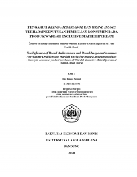 PENGARUH BRAND AMBASSADOR DAN BRAND IMAGE TERHADAP KEPUTUSAN PEMBELIAN KONSUMEN PADA PRODUK WARDAH EXCLUSIVE MATTE LIPCREAM (Survey terhadap konsumen pembeli Wardah Exclusive Matte Lipcream di Toko Cantik Abadi ) The Influence of Brand Ambassadors and Brand Image on Consumer Purchasing Decisions on Wardah Exclusive Matte Lipcream products ( Survey to consumer product purchases of Wardah Exclusive Matte Lipcream at Cantik Abadi Store)