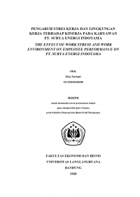 PENGARUH STRES KERJA DAN LINGKUNGAN KERJA TERHADAP KINERJA PADA KARYAWAN PT. SURYA ENERGI INDOTAMA THE EFFECT OF WORK STRESS AND WORK ENVIRONMENT ON EMPLOYEE PERFORMANCE ON PT. SURYA ENERGI INDOTAMA