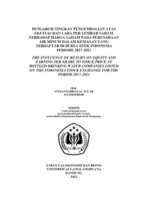 PENGARUH TINGKAT PENGEMBALIAN ATAS EKUITAS DAN LABA PER LEMBAR SAHAM TERHADAP HARGA SAHAM PADA PERUSAHAAN AIR MINUM DALAM KEMASAN YANG TERDAFTAR DI BURSA EFEK INDONESIA PERIODE - THE INFLUENCE OF RETURN ON EQUITY AND EARNING PER SHARE TO STOCK PRICE AT BOTTLED DRINKING WATER COMPANIES LISTED ON THE INDONESIA STOCK EXCHANGE FOR THE PERIOD 2017-2021