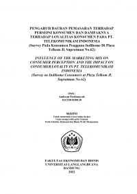 PENGARUH BAURAN PEMASARAN TERHADAP PERSEPSI KONSUMEN DAN DAMPAKNYA TERHADAP LOYALITAS KONSUMEN PADA PT. TELEKOMUNIKASI INDONESIA (Survey Pada Konsumen Pengguna Indihome Di Plasa Telkom Jl. Supratman No.62) INFLUENCE OF THE MARKETING MIX ON CONSUMER PERCEPTION AND THE IMPACT ON CONSUMER LOYALTY IN PT. TELEKOMUNIKASI INDONESIA (Survey on Indihome Consumers at Plaza Telkom Jl. Supratman No.62)