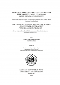 PENGARUH HARGA DAN KUALITAS PELAYANAN TERHADAP KEPUASAN PELANGGAN FIXED BROADBAND INDIHOME (Survey pada pengguna layanan fixed broadband Indihome Plasa Telkom Digital Supratman Kota Bandung) THE INFLUENCE OF PRICE AND SERVICE QUALITY ON CUSTOMER SATISFACTION FIXED BOADBAND INDIHOME (Survey on fixed broadband Indihome costumer Plasa Telkom Digital Supratman Bandung City)