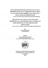 PENGARUH KEMUDAHAN PENGGUNAAN DAN PROMOSI PENJUALAN TERHADAP MINAT BELI ULANG KONSUMEN BERBELANJA MAKANAN PADA APLIKASI SHOPEEFOOD (Survey Pada Masyarakat Kelurahan Margaasih Kab.Bandung) THE EFFECT OF EASE OF USE AND SALES PROMOTION ON CONSUMER BUYING INTEREST IN FOOD SHOPPING ON THE SHOPEEFOOD APPLICATION (Survey on the Community of Margaasih Village, Bandung Regency)