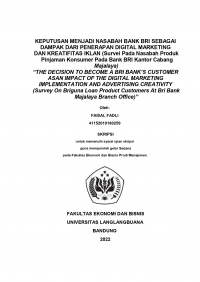 KEPUTUSAN MENJADI NASABAH BANK BRI SEBAGAI DAMPAK DARI PENERAPAN DIGITAL MARKETING DAN KREATIFITAS IKLAN (Survei Pada Nasabah Produk Pinjaman Konsumer Pada Bank BRI Kantor Cabang Majalaya) “THE DECISION TO BECOME A BRI BANK’S CUSTOMER ASAN IMPACT OF THE DIGITAL MARKETING IMPLEMENTATION AND ADVERTISING CREATIVITY (Survey On Briguna Loan Product Customers At Bri Bank Majalaya Branch Office)”