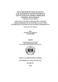 PENGARUH DESENTRALISASI DAN KARAKTERISTIK SISTEM INFORMASI AKUNTANSI MANAJEMEN TERHADAP KINERJA MANAJERIAL (Studi pada PT.LEN Industri) THE EFFECT OF DECENTRALIZATION AND THE CHARACTERISTICS OF MANAJEMEN ACCOUNTING INFORMATION SYSTEMS TO MANAGERIAL PERFORMANCE ( Study at PT LEN Industry)