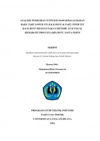 ANALISIS PEMILIHAN SUPPLIER SS400 SEBAGAI BAHAN BAKU PART LOWER FIX BACK BONE & PART UPPER FIX BACK BONE MENGGUNAKAN METODE ANALYTICAL HIERARCHY PROCESS (AHP) DI PT. SAFTA FERTI