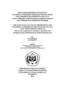 PENGARUH PROMOSI ONLINE DAN CELEBRITY ENDORSER TERHADAP BRAND IMAGE PADA PRODUK PELEMBAB WAJAH VIVA (Survey Dilakukan Pada Konsumen Pengikut Instagram Toko Mahmud Pasir Kaliki Kota Bandung) THE INFLUENCE OF ONLINE PROMOTIONS AND CELEBRITY ENDORSER OF BRAND IMAGE ON VIVA FACE MOISTURIZING PODUCTS (Survey was conducted on consumers who follow the Instagram shop of Mahmud Pasir Kaliki, Bandung City