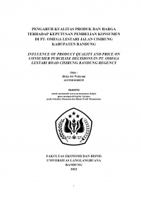 PENGARUH KUALITAS PRODUK DAN HARGA TERHADAP KEPUTUSAN PEMBELIAN KONSUMEN DI PT. OMEGA LESTARI JALAN CISIRUNG KABUPATEN BANDUNG INFLUENCE OF PRODUCT QUALITY AND PRICE ON CONSUMER PURCHASE DECISIONS IN PT. OMEGA LESTARI ROAD CISIRUNG BANDUNG REGENCY