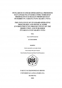 PENGARUH STANDAR OPERASIONAL PROSEDUR DAN LINGKUNGAN KERJA FISIK TERHADAP PRODUKTIVITAS BAGIAN PRODUKSI DAN PENERBIT PT. SARANA PANCAKARYA NUSA THE INFLUENCE OF STANDARD OPERATING PROCEDURES AND PHYSICAL WORK ENVIRONTMENT ON PROUDUCTIVITY OF THE PRODUCTION AND PUBLISHER PT SARANA PANCAKARYA NUSA