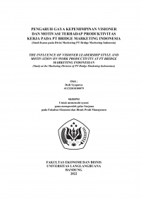 PENGARUH GAYA KEPEMIMPINAN VISIONER DAN MOTIVASI TERHADAP PRODUKTIVITAS KERJA PADA PT BRIDGE MARKETING INDONESIA (Studi Kasus pada Divisi Marketing PT Bridge Marketing Indonesia) THE INFLUENCE OF VISIONER LEADERSHIP STYLE AND MOTIVATION ON WORK PRODUCTIVITY AT PT BRIDGE MARKETING INDONESIAN (Study at the Marketing Division of PT Bridge Marketing Indonesian)