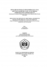 PENGARUH TINGKAT PENGEMBALIAN ATAS ASET DAN RASIO HUTANG ATAS MODAL TERHADAP NILAI PERUSAHAAN (Studi pada Perusahaan Multifinance di Bursa Efek Indonesia (BEI) Periode 2015-2019) THE EFFECT OF RETURN ON ASSET (ROA) AND DEBT TO EQUITY RATIO (DER) ON VALUE OF COMPANY (Study on Multifinance Companies Listed at the Indonesia Stock Exchange (IDX) for the 2015-2019 period)