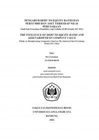 PENGARUH DEBT TO EQUITY RATIO DAN PERTUMBUHAN ASET TERHADAP NILAI PERUSAHAAN (Studi Pada Perusahaan Manufaktur yang Terdaftar Di BEI Periode 2017-2021) THE INFLUENCE OF DEBT TO EQUITY RATIO AND ASSET GROWTH ON COMPANY VALUE (Study on Manufacturing Companies Listed on The Indonesia Stock Exchange Period 2017-2021)