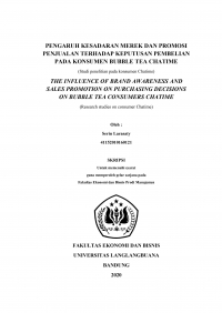 PENGARUH KESADARAN MEREK DAN PROMOSI PENJUALAN TERHADAP KEPUTUSAN PEMBELIAN PADA KONSUMEN BUBBLE TEA CHATIME (Studi penelitian pada konsumen Chatime) THE INFLUENCE OF BRAND AWARENESS AND SALES PROMOTION ON PURCHASING DECISIONS ON BUBBLE TEA CONSUMERS CHATIME