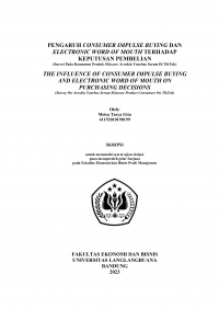 PENGARUH CONSUMER IMPULSE BUYING DAN ELECTRONIC WORD OF MOUTH TERHADAP KEPUTUSAN PEMBELIAN (Survei Pada Konsumen Produk Skincare Avoskin Yourbae Serum Di TikTok) THE INFLUENCE OF CONSUMER IMPULSE BUYING AND ELECTRONIC WORD OF MOUTH ON PURCHASING DECISIONS (Survey On Avoskin Yourbae Serum Skincare Product Consumers On TikTok) Oleh: