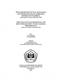 PENGARUH PENYUSUNAN ANGGARAN DAN DESENTRALISASI TERHADAP KINERJA MANAJERIAL (Studi pada PT. Papyrus Sakti Paper Mill) THE INFLUENCE OF BUDGETING AND DECENTRALIZATION TO MANAGERIAL PERFORMANCE (Study at PT. Papyrus Sakti Paper Mill)