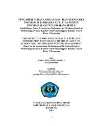 PENGARUH BUDAYA ORGANISASI DAN TEKNOLOGI INFORMASI TERHADAP KUALITAS SISTEM INFORMASI AKUNTANSI MANAJEMEN (Studi Kasus Pada Kementrian Perhubungan Direktoral Jendral Perhubungan Udara Kantor Unit Penyelenggara Bandar Udara Kelas 1 Wamena) THE EFFEECT OF ORGANIZATIONAL CULTURE AND INFORMATION TECHNOLOGY TO THE QUALITY OF ACCOUNTING INFORMATION SYSTEMS MANAGEMENT (Study on pt Kementrian Perhubungan Direktoral Jendral Perhubungan Udara Kantor Unit Penyelenggara Bandar Udara Kelas 1 Wamena)