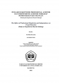 PENGARUH SKEPTISME PROFESIONAL AUDITOR DAN INDEPENDENSI AUDITOR TERHADAP PENDETEKSIAN KECURANGAN (Studi pada Inspektorat Daerah Subang) \ The Effect of Professional Skepticism and Independence on Fraud Detection (Study at Inspektorat Daerah Subang)
