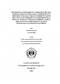 NABILLA RAMADHANTI. (2023).PENERAPAN SANKSI PIDANA TERHADAP PELAKU TINDAK PIDANA PERUSAKAN PERKEBUNAN MENURUT UNDANG-UNDANG NOMOR 39 TAHUN 2014 TENTANG PERKEBUNAN DIHUBUNGKAN DENGAN UNDANG-UNDANG NOMOR 32 TAHUN 2009 TENTANG PERLINDUNGAN DAN PENGELOLAAN LINGKUNGAN HIDUP.(Electronic Thesis or Dissertation). Retrieved from https://localhost/etd