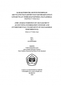 KARAKTERISTIK SISTEM INFORMASI AKUNTANSI MANAJEMEN DAN KETIDAKPASTIAN LINGKUNGAN TERHADAP KINERJA MANAJERIAL (Studi Pada CV.Saban Jaya) (THE CHARACTERISTICS OF MANAGEMENT ACCOUNTING INFORMATION SYSTEMS AND ENVIRONMENTAL UNCERTAINTY ON MANAGERIAL PERFORMANCE)