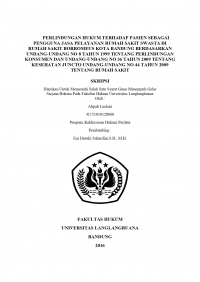 PERLINDUNGAN HUKUM TERHADAP PASIEN SEBAGAI PENGGUNA JASA PELAYANAN RUMAH SAKIT SWASTA DI RUMAH SAKIT BORROMEUS KOTA BANDUNG BERDASARKAN UNDANG-UNDANG NO 8 TAHUN 1999 TENTANG PERLINDUNGAN KONSUMEN DAN UNDANG-UNDANG NO 36 TAHUN 2009 TENTANG KESEHATAN JUNCTO UNDANG-UNDANG NO 44 TAHUN 2009 TENTANG RUMAH SAKIT