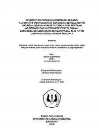 EFEKTIVITAS PUTUSAN ARBITRASE SEBAGAI ALTERNATIF PENYELESAIAN SENGKETA BERDASARKAN UNDANG-UNDANG NOMOR 30 TAHUN 1999 TENTANG ARBITRASE DAN ALTERNATIF PENYELESAIAN SENGKETA DIHUBUNGKAN DENGAN PASAL 1338 KITAB UNDANG-UNDANG HUKUM PERDATA SKRIPSI