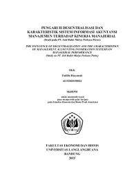 PENGARUH DESENTRALISASI DAN KARAKTERISTIK SISTEM INFORMASI AKUNTANSI MANAJEMEN TERHADAP KINERJA MANAJERIAL (Studi pada PT. Inti Bukit Mulya Perkasa Putra)