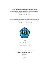 Ayu Sry Lestari. (2023).UPAYA PENERAPAN METODE DEMONSTRASI UNTUK MENINGKATKAN KREATIVITAS PESERTA DIDIK DALAM SENI TARI JAIPONG MOJANG PRIANGAN (SDN CICALENGKA 07).(Electronic Thesis or Dissertation). Retrieved from https://localhost/etd