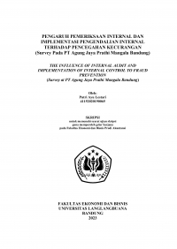 Putri Ayu Lestari. (2023).PENGARUH PEMERIKSAAN INTERNAL DAN IMPLEMENTASI PENGENDALIAN INTERNAL TERHADAP PENCEGAHAN KECURANGAN (Survey Pada PT Agung Jaya Prathi Mangala Bandung).(Electronic Thesis or Dissertation). Retrieved from https://localhost/etd