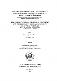 PENGARUH PROFITABILITAS, LIKUIDITAS DAN ECONOMIC VALUE ADDED (EVA) TERHADAP HARGA SAHAM PER LEMBAR (Studi pada Perusahaan Sektor Transportasi yang Ter daftar Di Bursa Efek Indonesia Tahun 2018-2022)