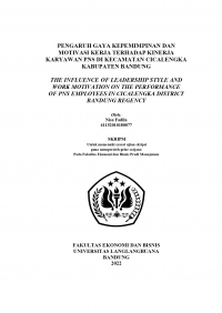 “Pengaruh Gaya Kepemimpinan dan Motivas Kerja terhadap Kinerja KaryawaPNS di Kecamatan Cicalengka”. Skripsi ini dibimbing oleh Bapak Enang NarlaSAP, S.E.,M.M selaku dosen pembimbing satu dan Ibu Puti Harissa, S.E.,M.Mselaku dosen pembimbing dua.