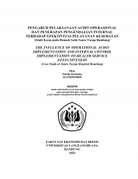 PENGARUH PELAKSANAAN AUDIT OPERASIONAL DAN PENERAPAN PENGENDALIAN INTERNAL TERHADAP EFEKTIVITAS PELAYANAN KESEHATAN (Studi Kasus pada Rumah Sakit Santo Yusup Bandung)