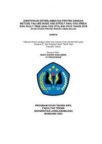 REZA AGUNG NURJAMAN. (2023).IDENTIFIKASI KETERLAMBATAN PROYEK DENGAN METODE FAILURE,MODE,AND,EFFECT ANALYSIS (FMEA) DAN FAULT TREE ANALYSIS (FTA) SNI 31010 TAHUN 2016 (STUDI KASUS PROYEK WADUK LEBAK BULUS).(Electronic Thesis or Dissertation). Retrieved from https://localhost/etd