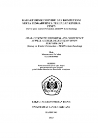 KARAKTERISIK INDIVIDU DAN KOMPETENSI SERTA PENGARUHNYA TERHADAP KINERJA PPNPN (Survey pada Kantor Pertanahan ATR/BPN Kota Bandung)