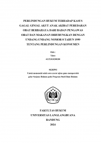 PERLINDUNGAN HUKUM TERHADAP KASUS GAGAL GINJAL AKUT ANAK AKIBAT PEREDARAN OBAT BERBAHAYA DARI BADAN PENGAWAS OBAT DAN MAKANAN DIHUBUNGKAN DENGAN UNDANG-UNDANG NOMOR 8 TAHUN 1999 TENTANG PERLINDUNGAN KONSUMEN