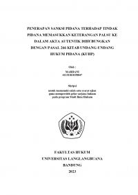 MARDANI. (2023).PENERAPAN SANKSI PIDANA TERHADAP TINDAKPIDANA MEMASUKKAN KETERANGAN PALSU K