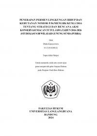 PENERAPAN PERMEN LINGKUNGAN HIDUP DAN KEHUTANAN NOMOR P.56/MENLHK/KUM.1/2016 TENTANG STRATEGI DAN RENCANA AKSI KONSERVASI MACAN TUTUL JAWA TAHUN 2016-2026 (STUDI KASUS DI WILAYAH GUNUNG SUNDA PURBA)