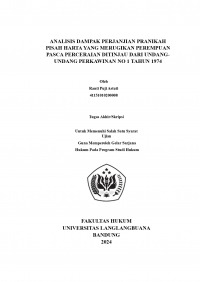 ANALISIS DAMPAK PERJANJIAN PRANIKAH PISAH HARTA YANG MERUGIKAN PEREMPUAN PASCA PERCERAIAN DITINJAU DARI UNDANG- UNDANG PERKAWINAN NO 1 TAHUN 1974