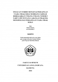TINJAUAN YURIDIS MENGENAI PERSAINGAN USAHA TIDAK SEHAT DI BIDANG FARMASI BERDASARKAN UNDANG-UNDANG NOMOR 5 TAHUN 1999 TENTANG LARANGAN PRAKTEK MONOPOLI DAN PERSAINGAN USAHA TIDAK SEHAT