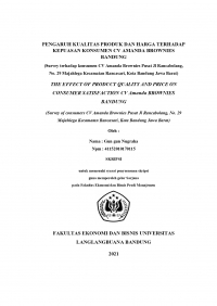 PENGARUH KUALITAS PRODUK DAN HARGA TERHADAP KEPUASAN KONSUMEN CV AMANDA BROWNIES BANDUNG (Survey terhadap konsumen CV Amanda Brownies Pusat Jl Rancabolang, No. 29 Majahlega Kecamatan Rancasari, Kota Bandung Jawa Barat) THE EFFECT OF PRODUCT QUALITY AND PRICE ON CONSUMER SATISFACTION CV Amanda BROWNIES BANDUNG (Survey of consumers CV Amanda Brownies Pusat Jl Rancabolang, No. 29 Majahlega Kecamatan Rancasari, Kota Bandung Jawa Barat)