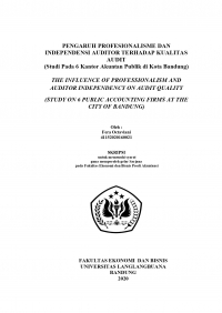 Penelitian ini menguji apakah Profesionalisme, Independensi Auditor berpengaruh